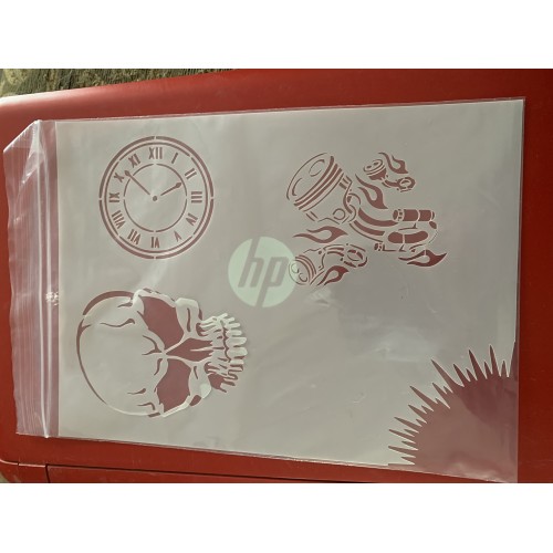 This stencil has 1 a4 sheets with it. Its made from 190 micron mylar.