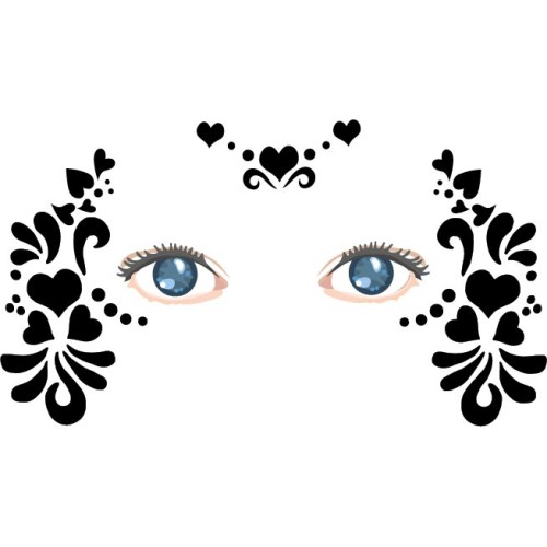 multipart stencil which can be used with an airbrush or sponges to make a pretty eye face paint with hearts . There are 2 sizes . age 4 to 7 and age 8 to adult.